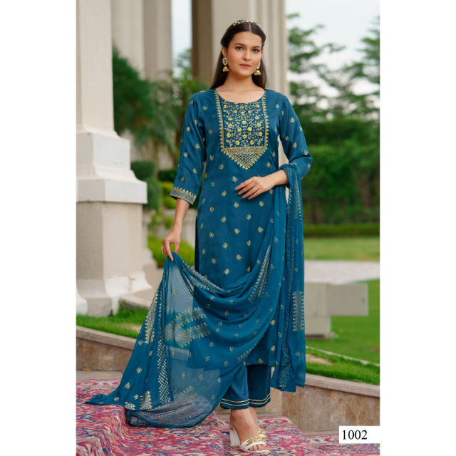Product Name:Hot Selling Gold Printed Silk Kurti Pant With Dupatta