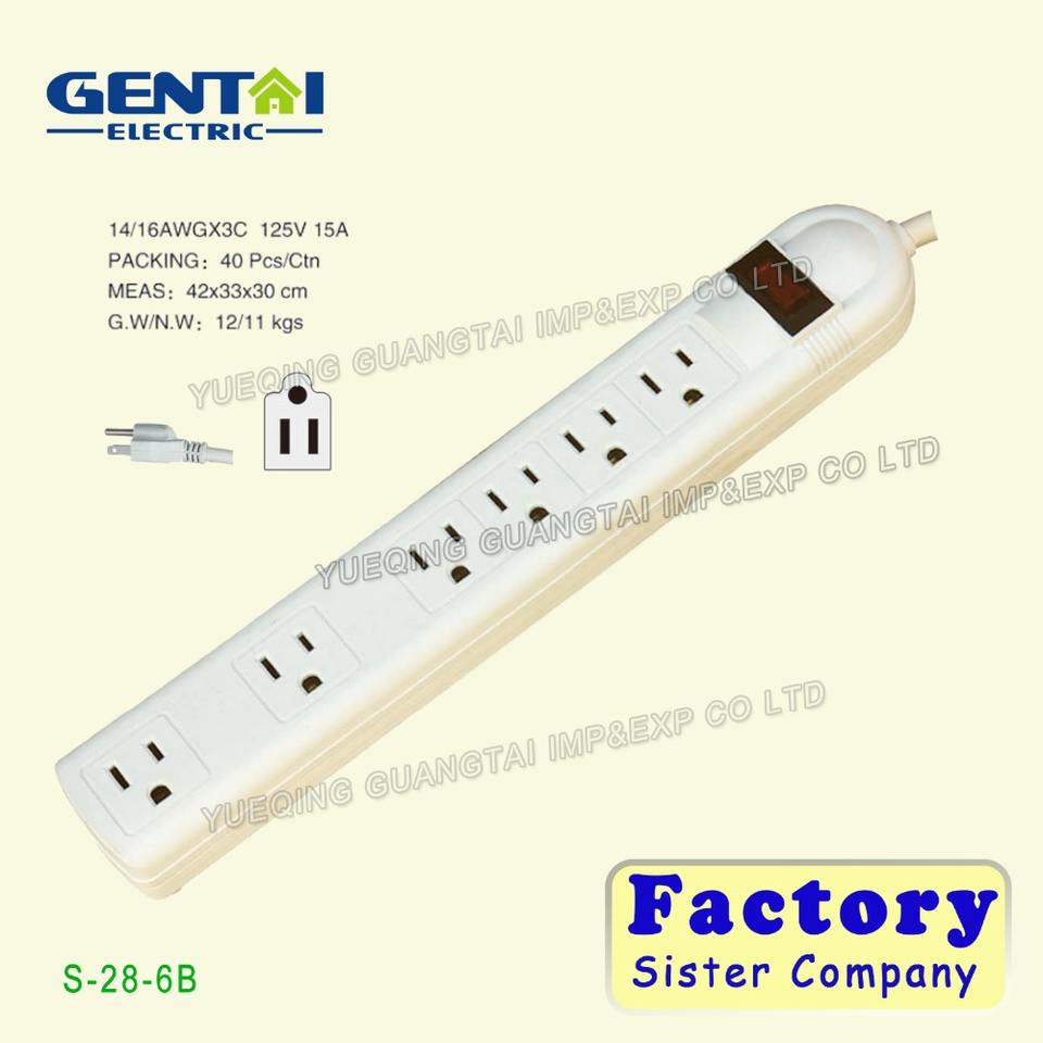 เต้าเสียบปลั๊กไฟ6ช่องป้องกันไฟกระชากเต็ม230โวลต์อเมริกาสหรัฐ