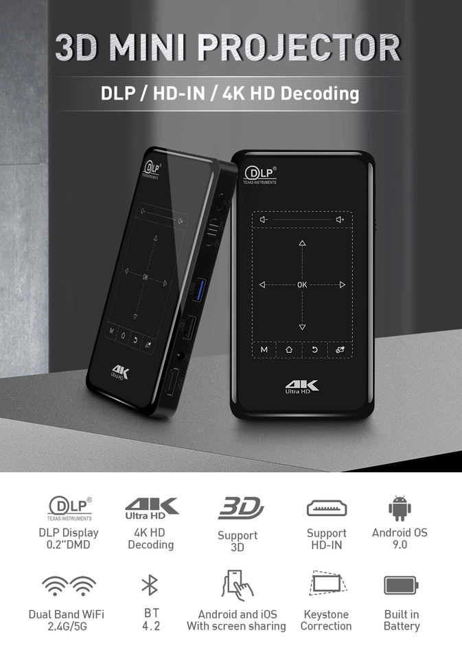 ชื่อผลิตภัณฑ์:3D โปรเจคเตอร์แอนดรอยด์9.0 DLP อัจฉริยะถอดรหัส4K