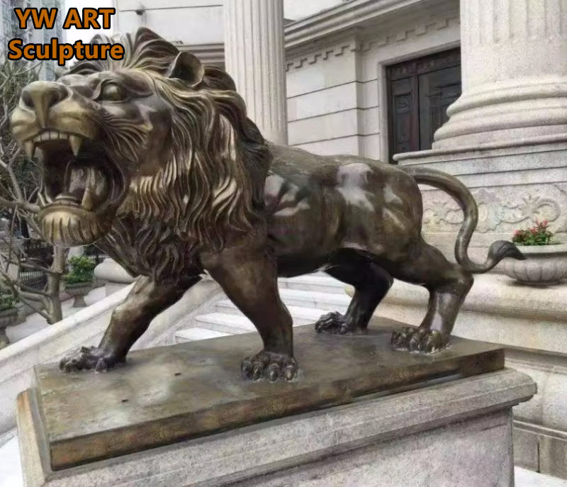 รูปปั้นสิงโตทองเหลืองขนาดใหญ่สำหรับตกแต่งภายนอกอาคาร งานศิลปะประติมากรรมหล่อขึ้นรูปและขัดเงา สไตล์โมเดิร์น เหมาะสำหรับตกแต่งเมือง กำลังขายดี