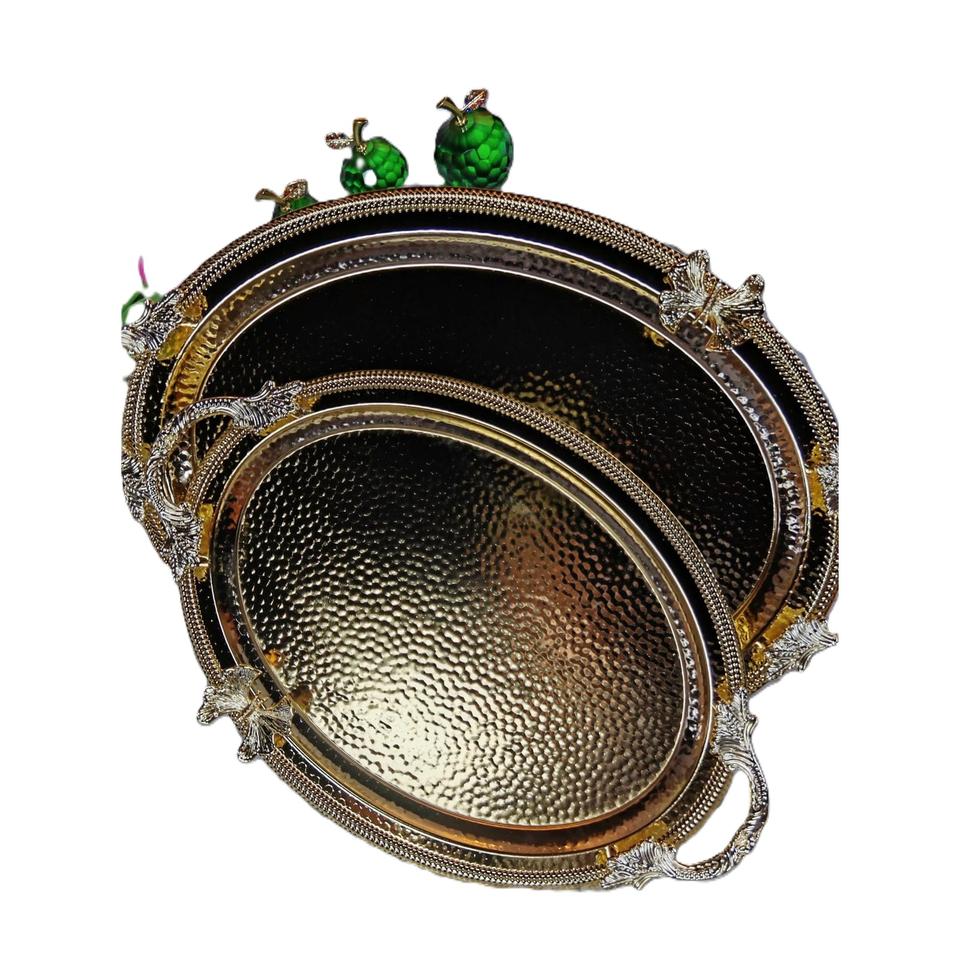 ถาดเสิร์ฟทองเหลืองโบราณทำด้วยมือพร้อมดีไซน์วินเทจหรูหราสำหรับรับประทานอาหารที่บ้านโลหะคุณภาพพรีเมี่ยม