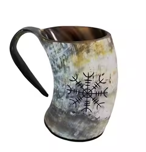 แก้วมักทำจากเขาวัวโบราณแบบใช้แล้วทิ้งจากอินเดียสำหรับงานปาร์ตี้สำหรับดื่มเบียร์ไวน์กาแฟและน้ำโดยงานฝีมือเสี้ยว
