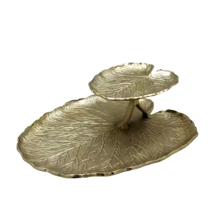 เครื่องใช้บนโต๊ะอาหารโลหะตกแต่งหรูหราจานเสิร์ฟรูปใบไม้สำหรับงานแต่งงานเคลือบผิวมาร้อน