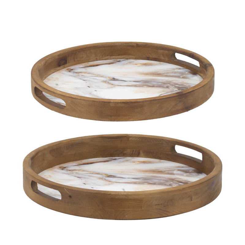 ถาดเสิร์ฟไม้ทรงกลมสไตล์อาร์ตเดโค ลายหินอ่อนเคลือบอีนาเมล งานแฮนด์เมด ขายดี