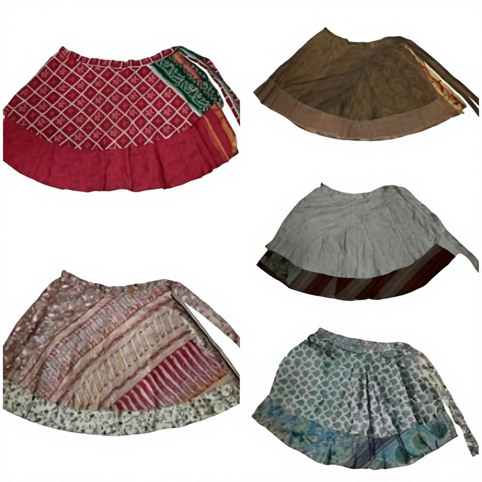 กระโปรงผ้าไหมพิมพ์ลายศิลปะสำหรับฤดูร้อน ขายดี ความยาวระดับเข่า แบบพันรอบตัว คละสี ขายส่งจากอินเดีย