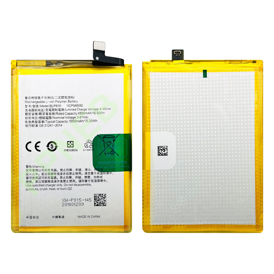 แบตเตอรี่ลิเธียมแบบชาร์จได้ BLP915 4890mAh สำหรับโทรศัพท์ OPPO A57 5G A58X แบตเตอรี่ดิจิตอลคุณภาพดี ความจุสูง ได้รับมาตรฐาน CE FCC ขายดี