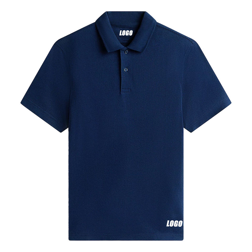 เสื้อโปโลผ้าวาฟเฟิลทรงปกติแบบมีป้ายติด ขายดี สามารถปรับแต่งได้ ระบายอากาศได้ดี เนื้อผ้ามีเท็กซ์เจอร์ สวมใส่สบาย พรีเมียม สำหรับผู้ชาย