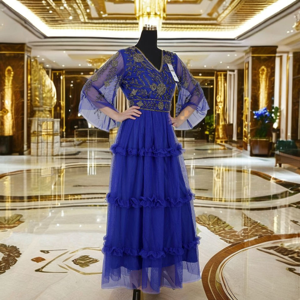 Hot Selling Beaded Evening Dress Mermaid Long Heavy Beaded Sleeves Flare Net Skirt Style Dress Dance Club Party Wear Outfit Wear