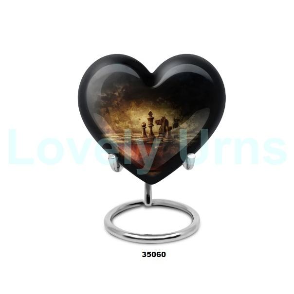 โกศใส่ศพรูปหัวใจหมากรุกที่สวยงามสำหรับผู้ใหญ่ขี้เถ้าของตกแต่งรูปหัวใจขนาดใหญ่พร้อมขาตั้งและถุงกำมะหยี่ฟรี