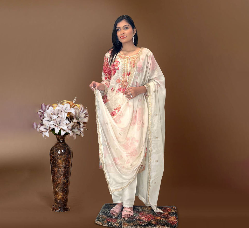 ชุดซาลวาร์คาเมซทำจากผ้าออร์แกนซ่าพร้อมพิมพ์ลายดิจิทัลลำดับแบบสวยงาม
