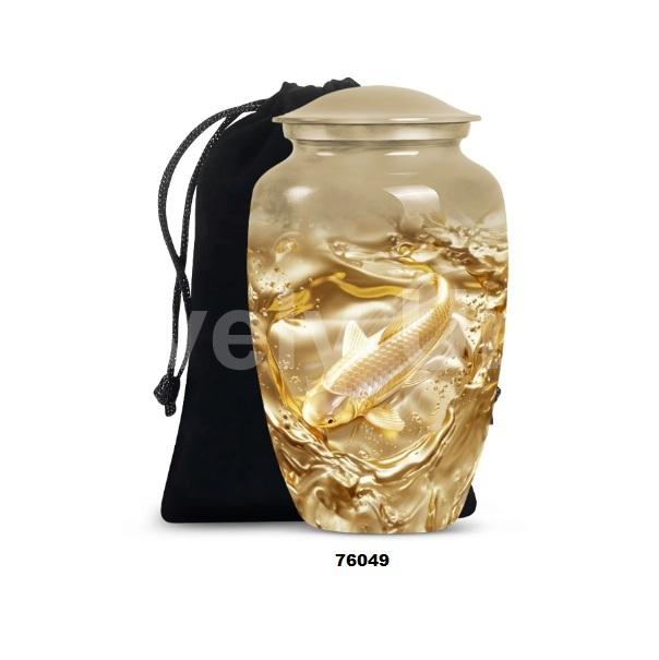 โกศใส่เถ้ากระดูกมนุษย์พร้อมฝาปิดถุงกำมะหยี่อลูมิเนียมขนาดใหญ่รูปปลาสีทองสวย