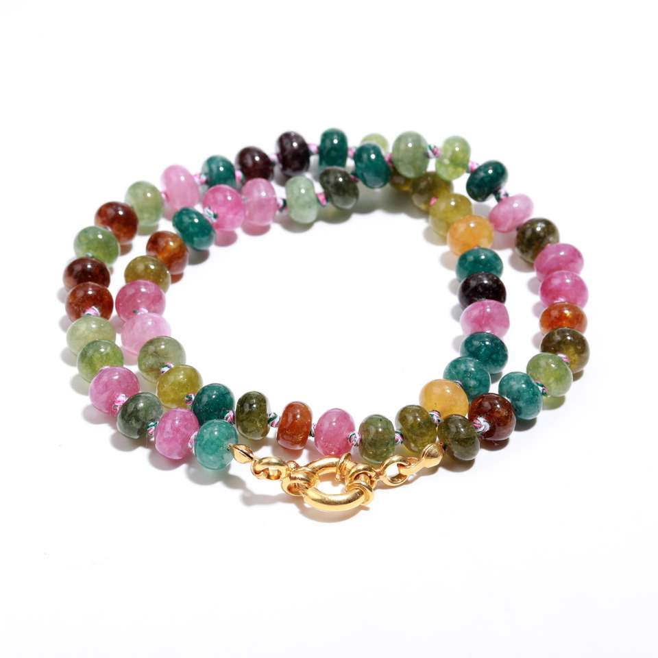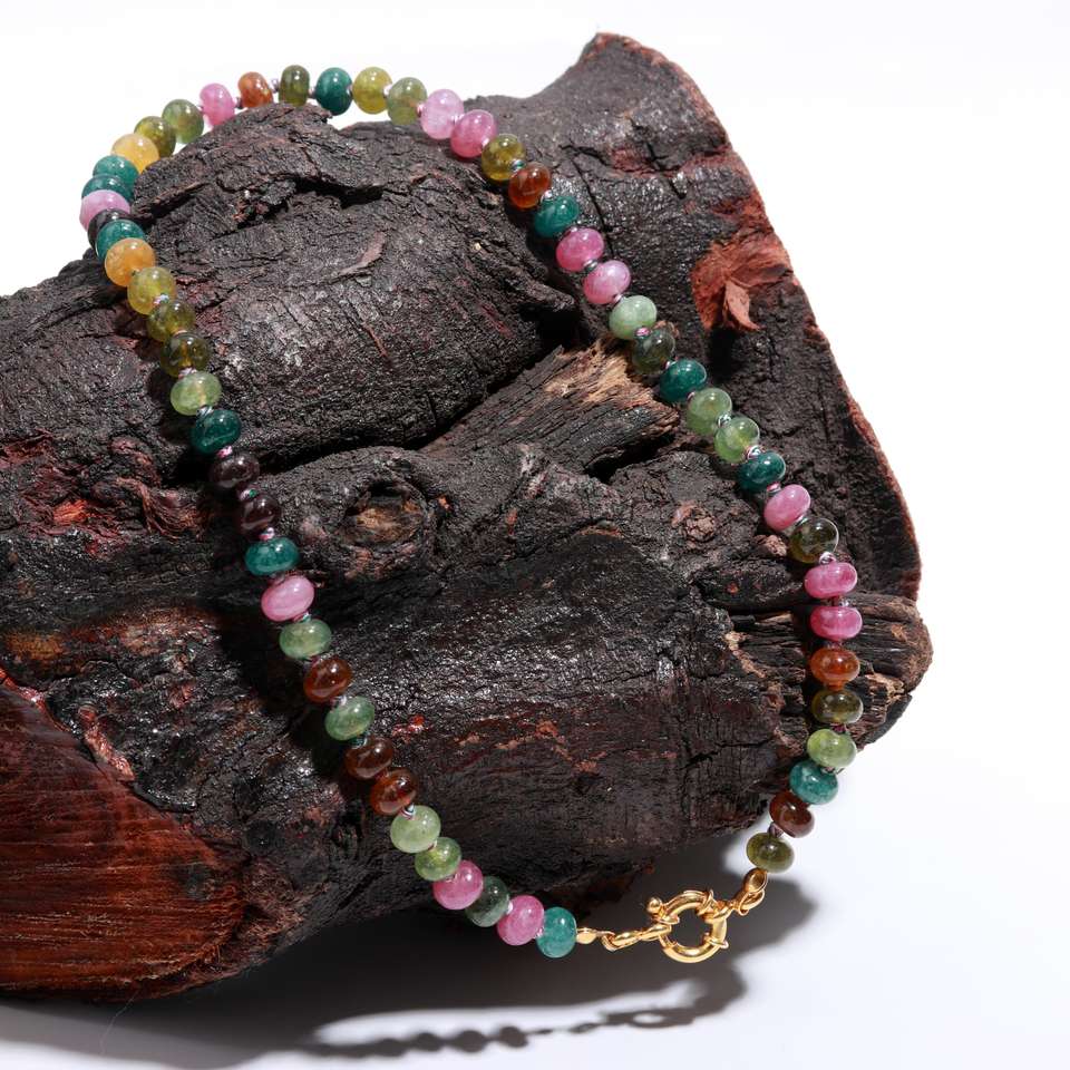 สร้อยคอพลอยทัวร์มาลีนแบบผูกปมมือสวยงามของขวัญ