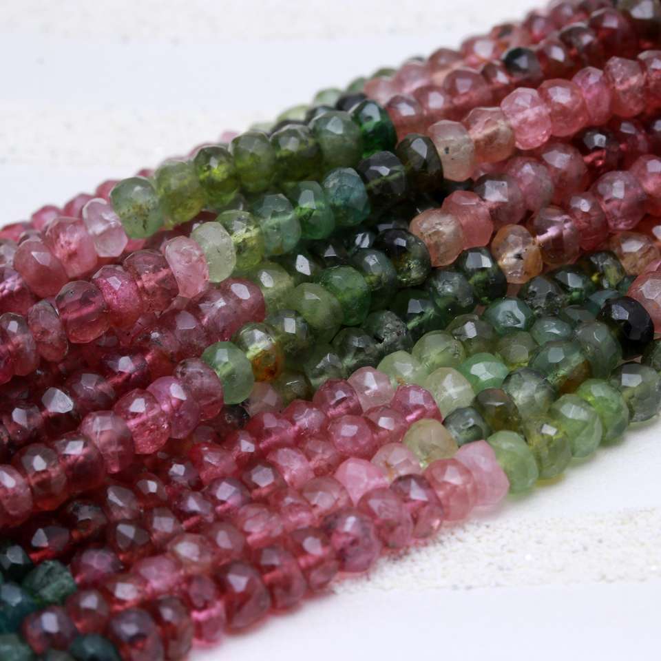 ลูกปัดพลอยทัวร์มาลีนหลากสีธรรมชาติที่สวยงาม