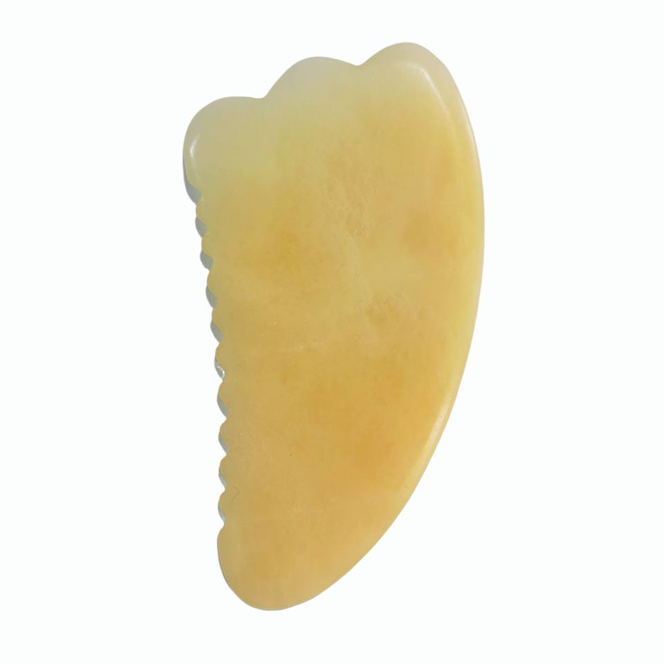 แผ่นขูดหน้าหินสีเหลืองเบจขายดี พร้อมฟันสำหรับนวดหน้า อุปกรณ์เสริมความงาม กัวซาสีเหลืองสำหรับใบหน้า