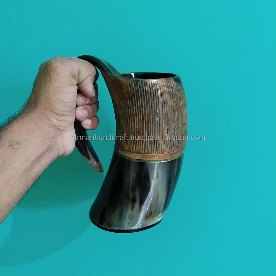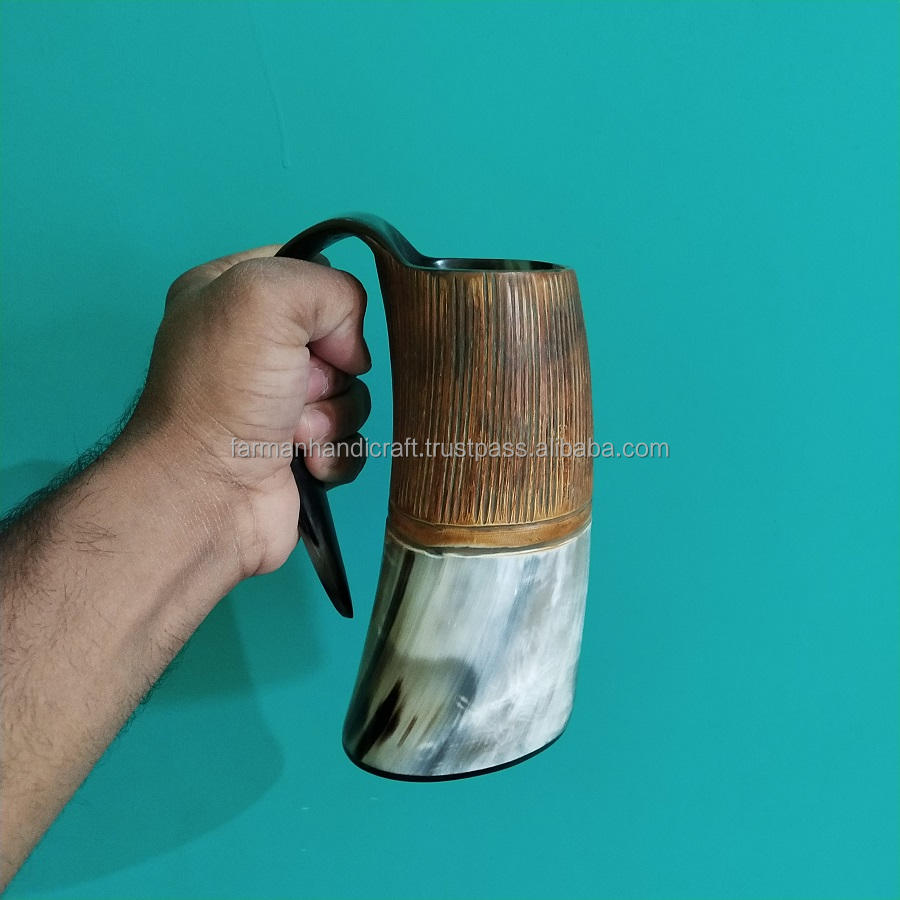 แก้วเขาสัตว์แกะสลักลายวัวสไตล์ไวกิ้ง คุณภาพดี ขายดี ราคาถูก