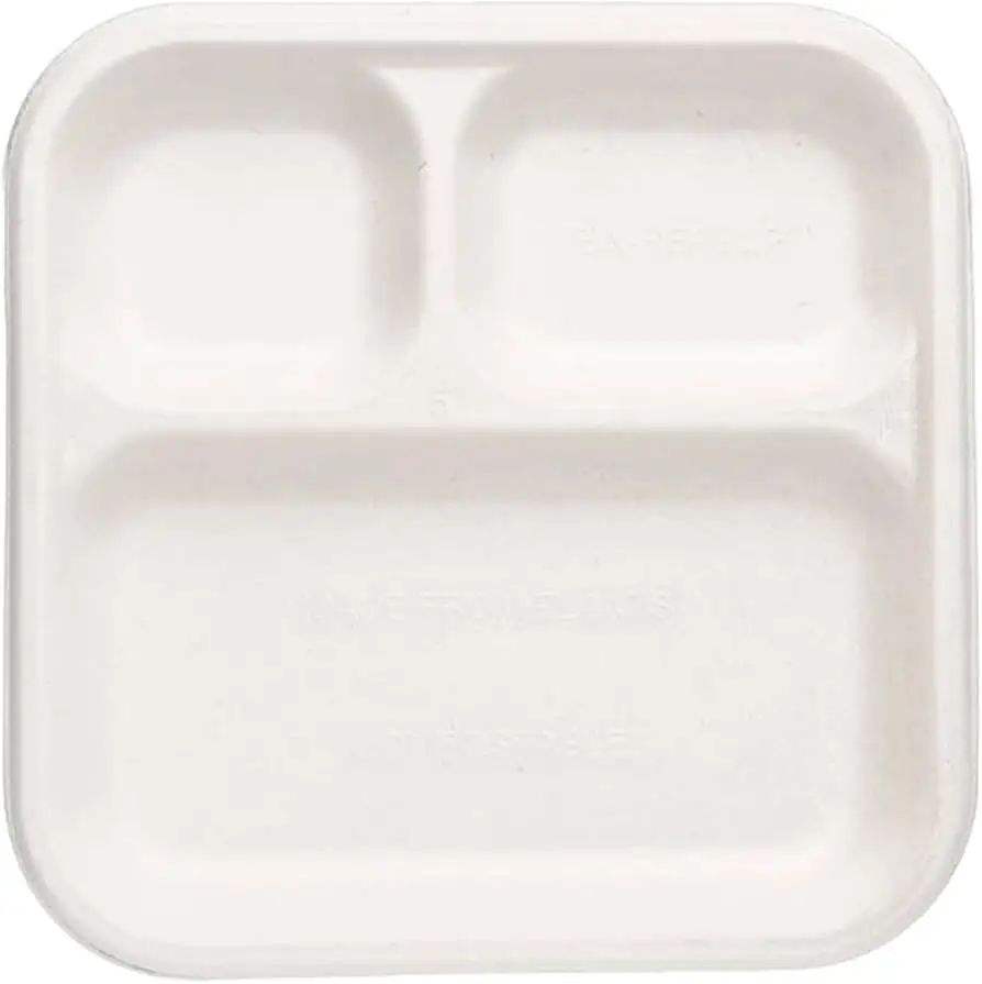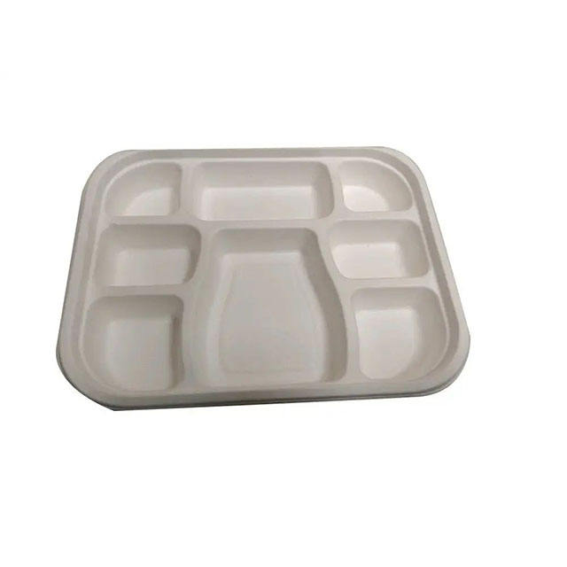 แผ่นชานอ้อยแบบย่อยสลายได้สำหรับใส่อาหารกลับบ้านแบบใช้แล้วทิ้งถาดสำหรับงานปาร์ตี้ตามธรรมชาติ