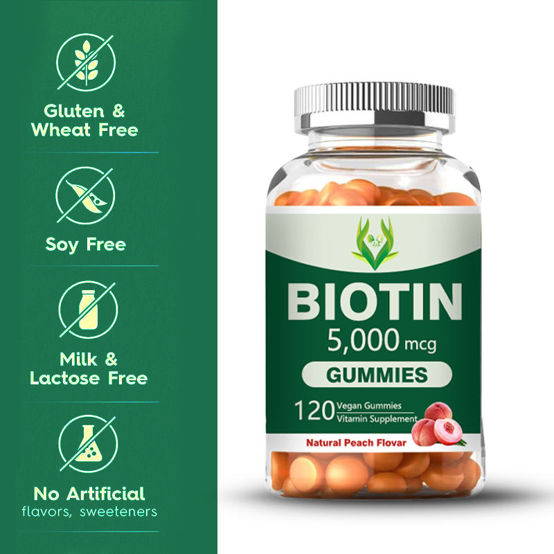ไบโอตินเยลลี่5000mcg กลูเตนฟรีอาหารเสริมประสิทธิภาพสูงรองรับผิวเล็บสุขภาพความงามสำหรับผู้ใหญ่สตรีมีครรภ์