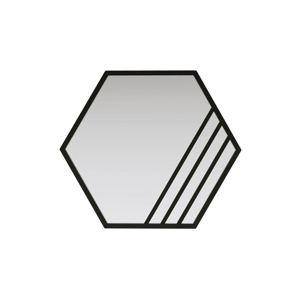กระจกกรอบโลหะทรงหกเหลี่ยมสำหรับงานแต่งงานกระจกติดผนังดีไซน์เหล็กสีดำสำหรับวิลล่า