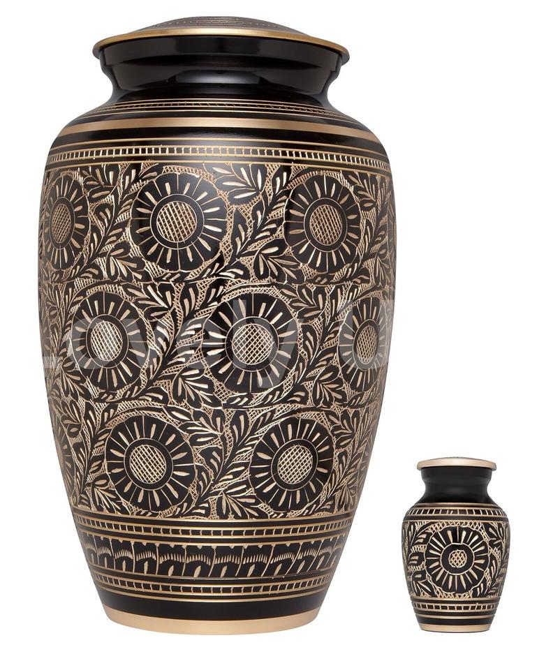 ร้อนขายสีดําทองมือแกะสลักทองเหลืองงานศพผู้ใหญ่ที่ระลึกการเผาศพ Urns สําหรับเถ้ามนุษย์ฟรีถุงกํามะหยี่