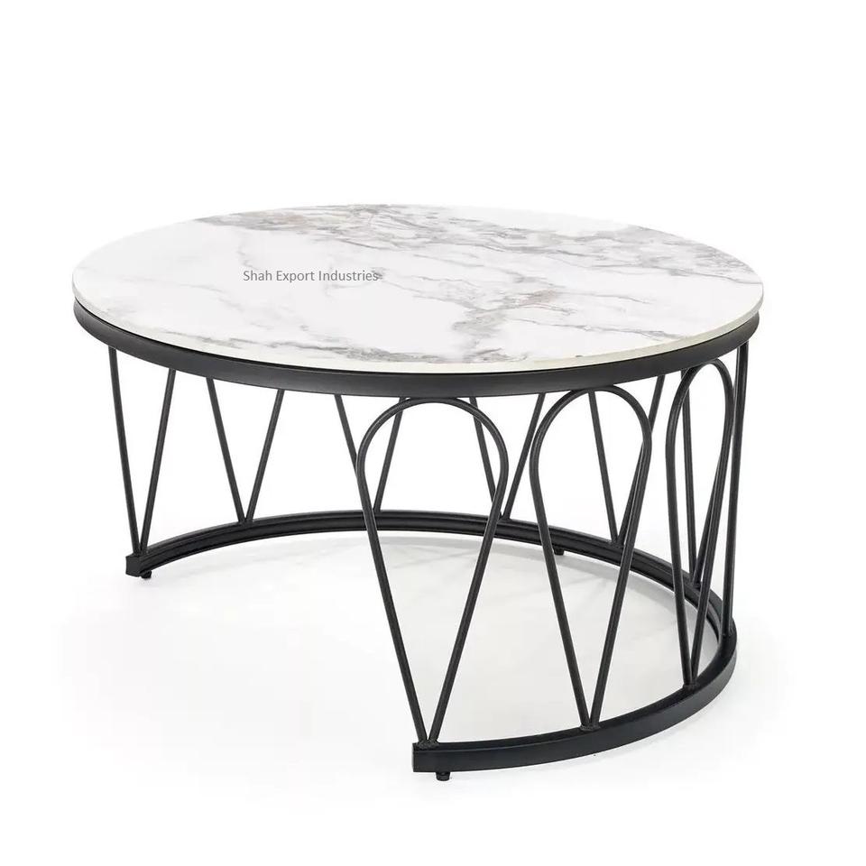 โต๊ะข้างเหล็กสีดำพร้อมหินอ่อนสีขาวสำหรับห้องนั่งเล่น, เฟอร์นิเจอร์ตกแต่งห้องนั่งเล่น