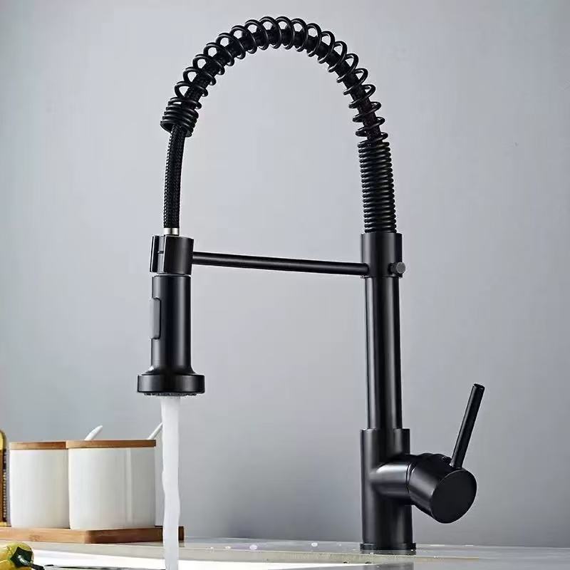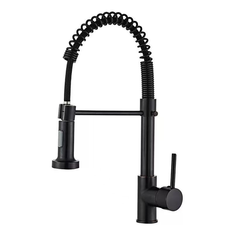 ก๊อกน้ำแบบดึงออกได้สำหรับอ่างล้างจานในครัวสีดำพร้อมแกนวาล์วเซรามิกสำหรับน้ำร้อนและน้ำเย็น