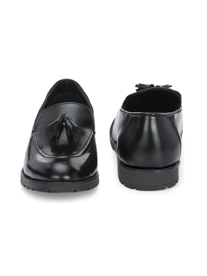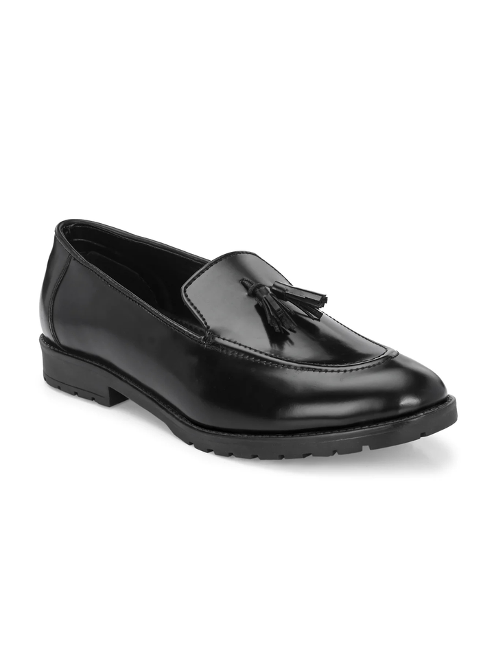 รองเท้าหนังนิ่มแบบสวมบนพื้นสีดำสำหรับผู้ชายรองเท้าโลฟเฟอร์ทางการพร้อมพู่