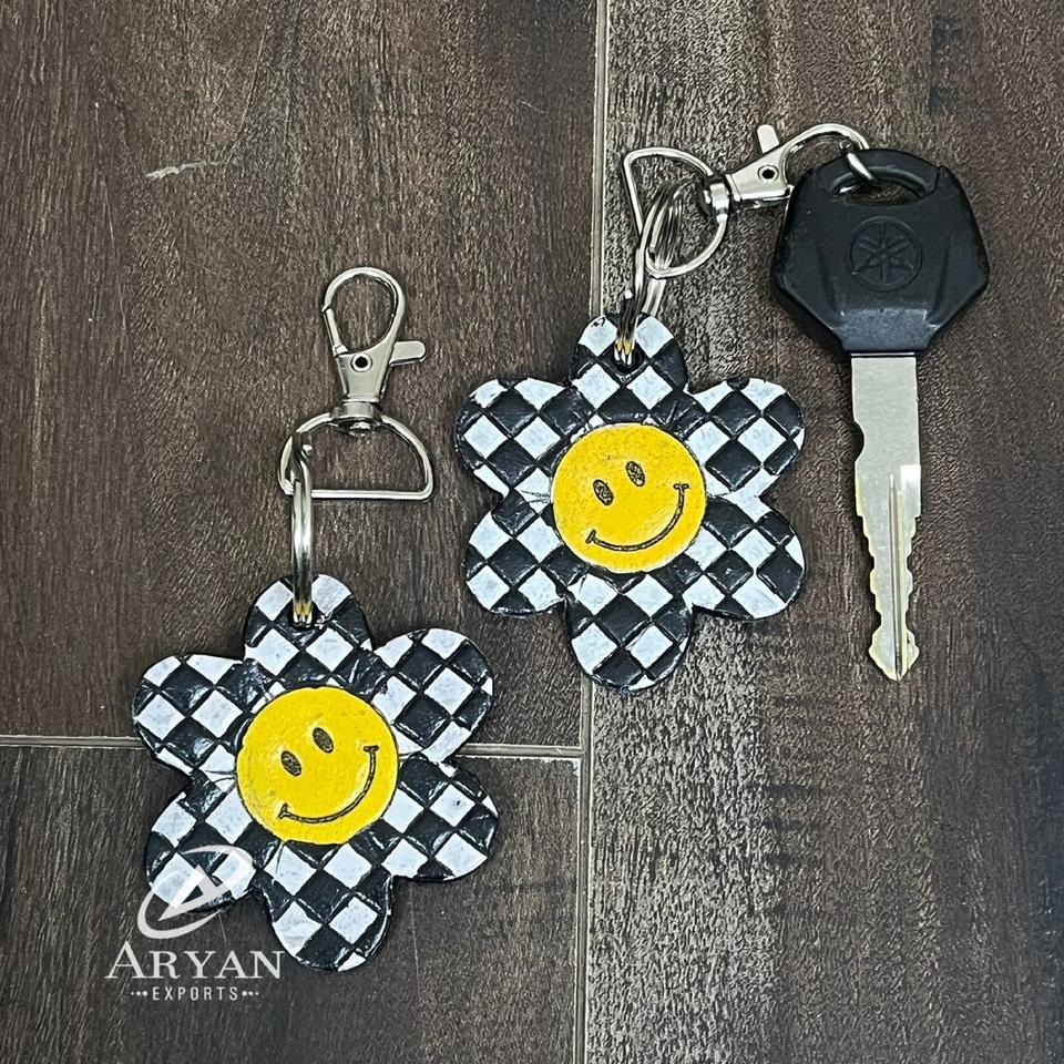 พวงกุญแจหนังลายตารางหมากรุกสีดำขาว ขายดี หนังแท้ ดีไซน์ใหม่ ของที่ระลึก ของขวัญ สำหรับทุกเพศ
