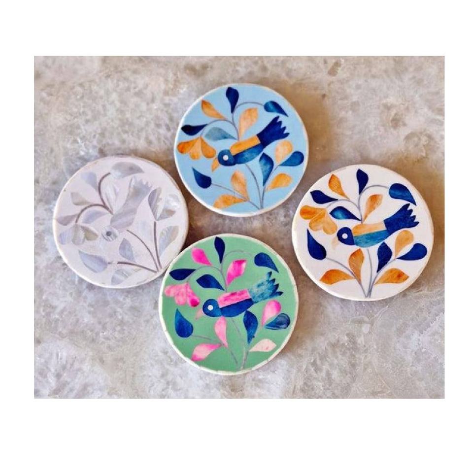 ชุดถาดรองกระดูกแบบฝังลายนก4ชิ้นสำหรับเครื่องดื่มกาแฟถาดรองแก้วในครัวดีไซน์ใช้ได้ทุกรูปแบบ