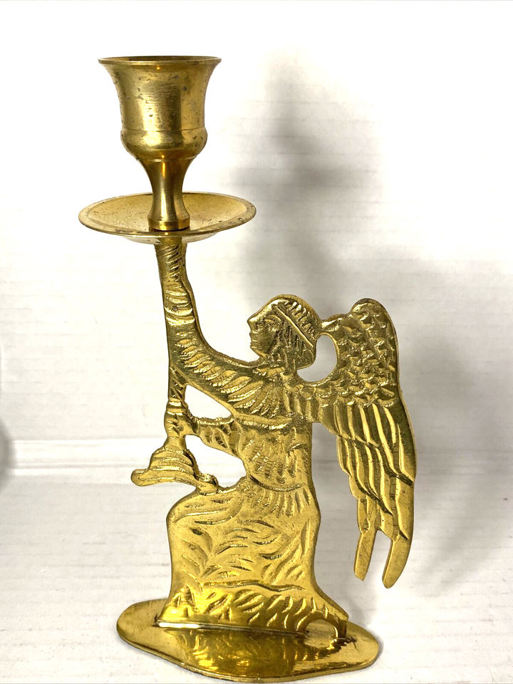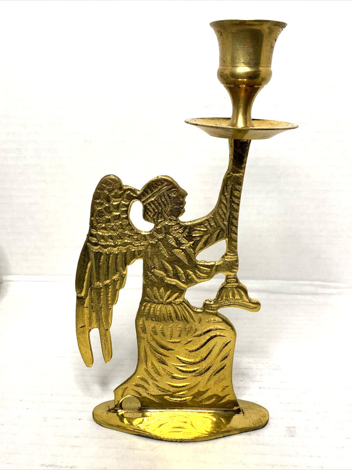 ร้อนขายทองเหลืองแองเจิลหุ่นเทียนยืนโบราณสําเร็จรูปทําด้วยมือโบราณออกแบบเทียนยืนโต๊ะตกแต่งของขวัญ