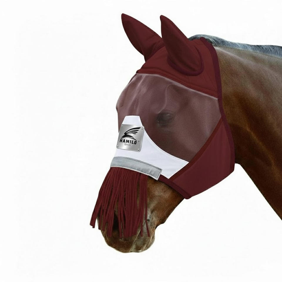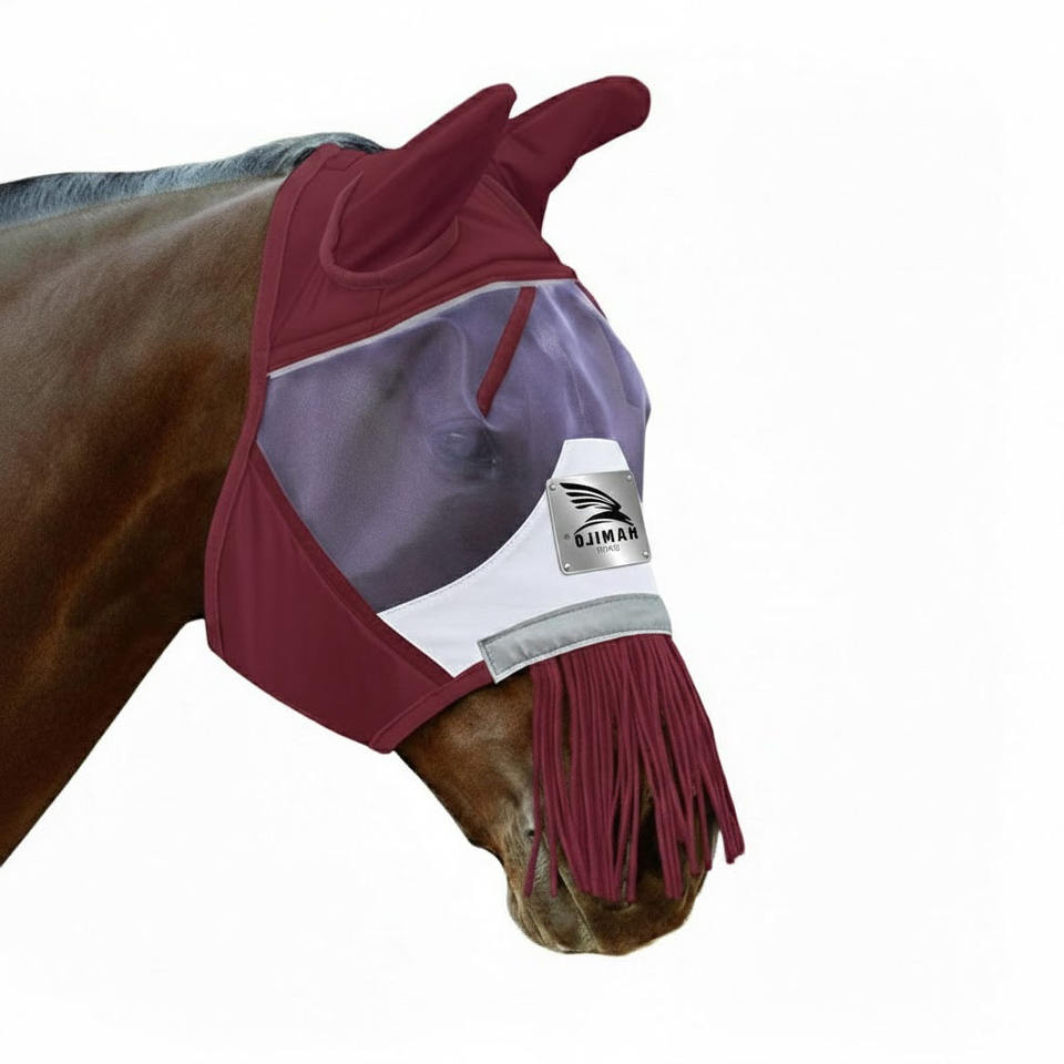 หน้ากากกันแมลงวันสำหรับม้า ระบายอากาศได้ดี สวมใส่สบาย พร้อมที่คลุมหู ยืดหยุ่นได้ พร้อมตาข่ายปิดตา
