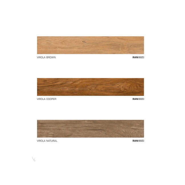 กระเบื้องพอร์ซเลนไม้กันลื่นสีน้ำตาลทนทานวัสดุเซรามิกทำจากไม้สำหรับผนังและพื้นสำนักงานดีไซน์ทันสมัย