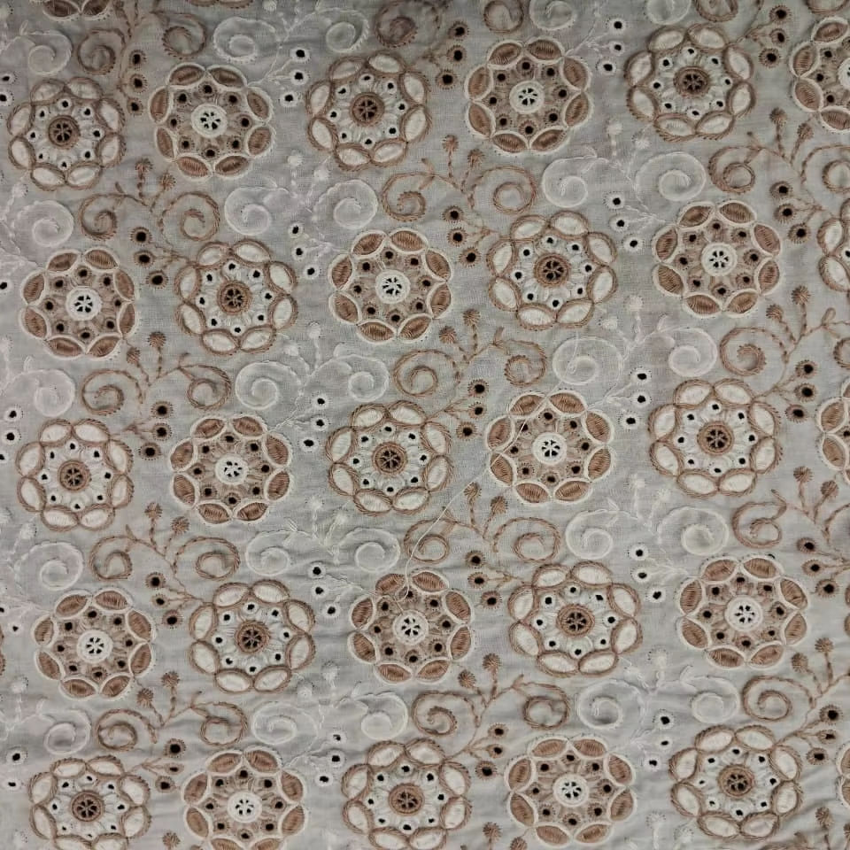 ผ้าฝ้ายปักลายดอกไม้สีน้ำตาลขาว 100% ลายฉลุลายดอกไม้แบบวงกลม ลายกิ่งไม้เกลียว สำหรับงานแต่งงาน ขายดี
