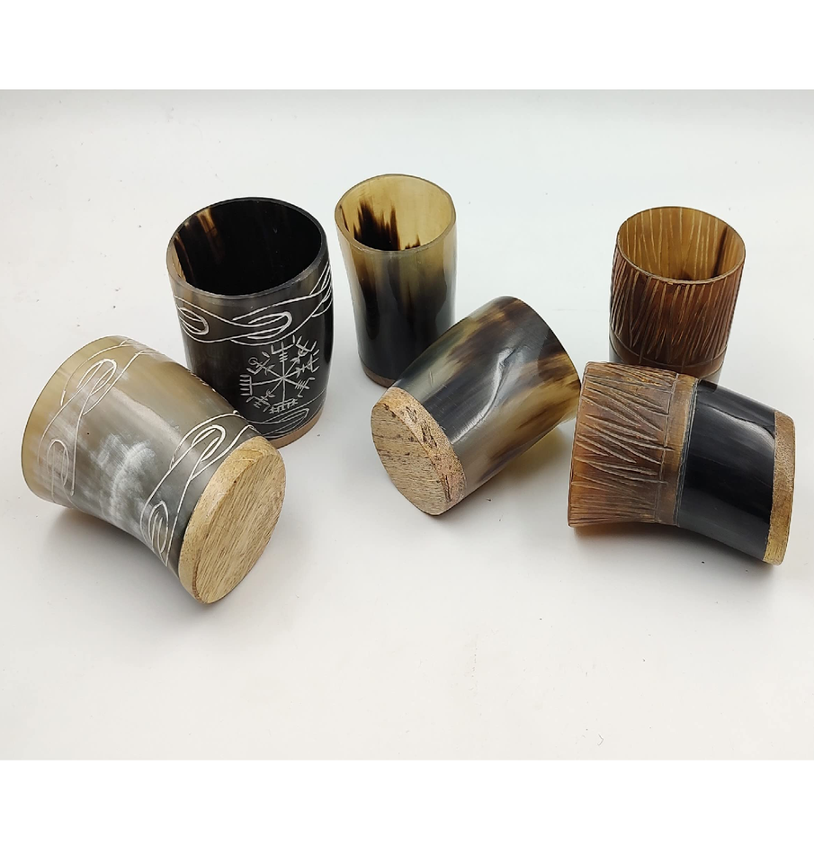 แก้วทรงเขาควายฐานไม้ดีไซน์หรูหราแก้วควายไวกิ้งธรรมชาติ