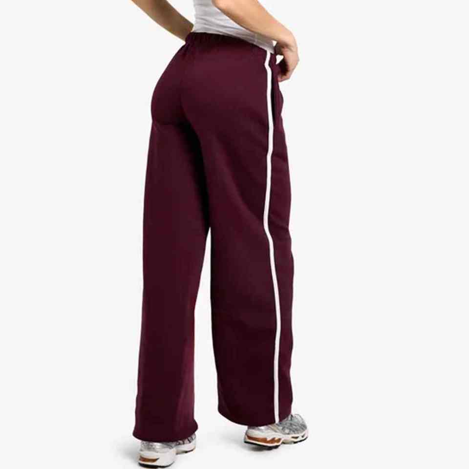 กางเกงจ็อกเกอร์ทรงตรงลายทางทรงสูงของผู้หญิงผ้าขนแกะเนื้อนุ่มแบบสัมผัสผ้าคอตตอนฤดูหนาวกางเกงด้านหน้าเรียบ