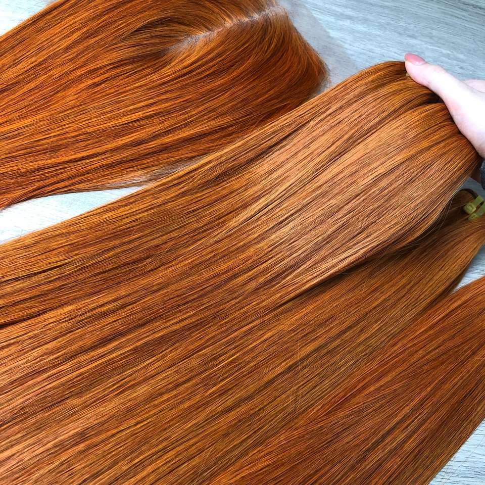 ผมคนขนาด18นิ้วสีส้มไหม้พร้อมฝาปิด5x5 100% ผมจริงสองชั้น