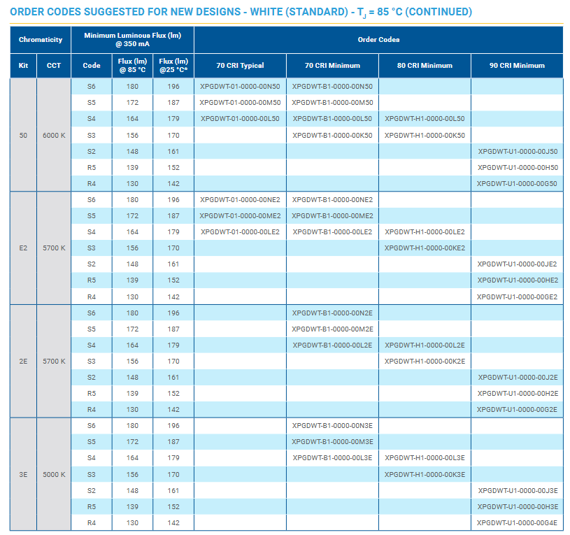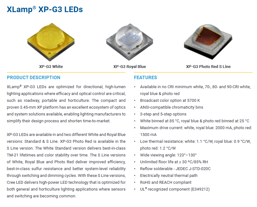 Crees xlamps ชิปไฟ LED xpgdwt 70CRI สีขาวรอยัลบลู1800K-7000K หรี่แสงได้