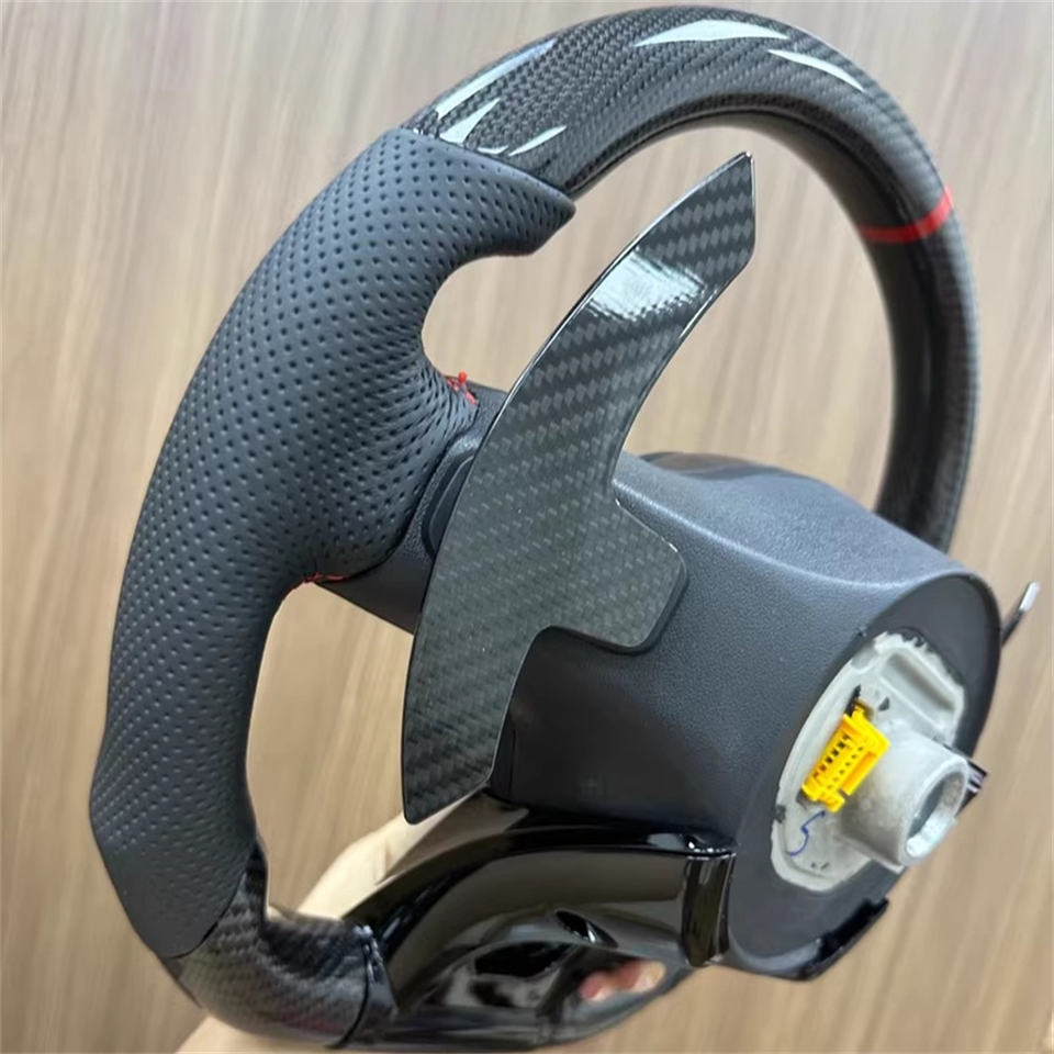 เลือกเลยสี: หนังคาร์บอนไฟเบอร์สีดำคุณภาพสูง พร้อมแป้นเปลี่ยนเกียร์และปุ่มควบคุม