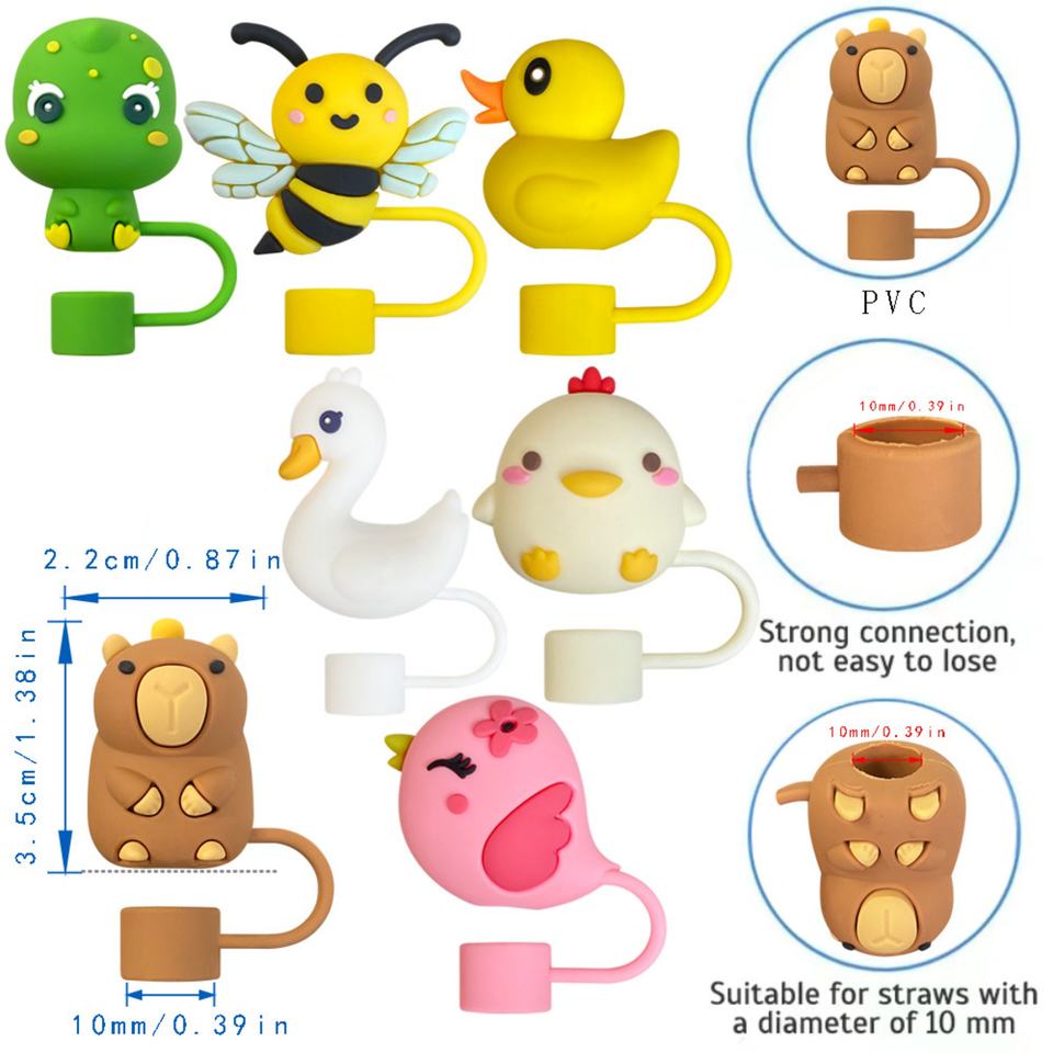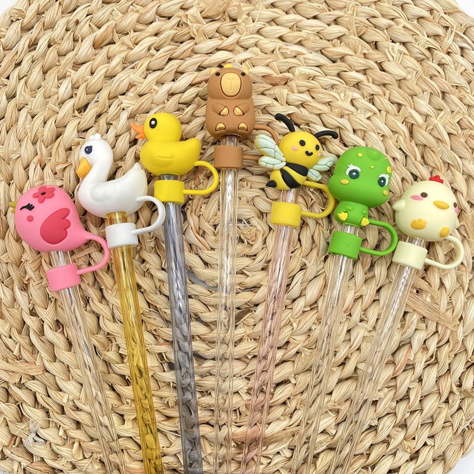 ฝาครอบหลอดดูดซิลิโคนลายการ์ตูนขายดี ใช้ซ้ำได้ อุปกรณ์เสริมแก้วน้ำ พิมพ์ลาย 3 มิติ