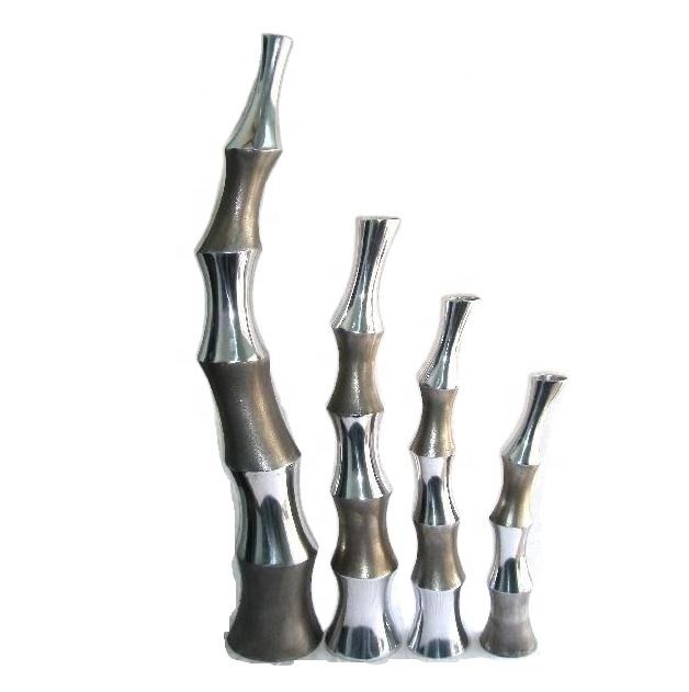 แจกันดอกไม้อลูมิเนียมหล่อกระจกเคลือบเงาสไตล์ไม้ไผ่และเคลือบทองเหลืองโบราณตกแต่งบ้านสำนักงานห้องนั่งเล่น