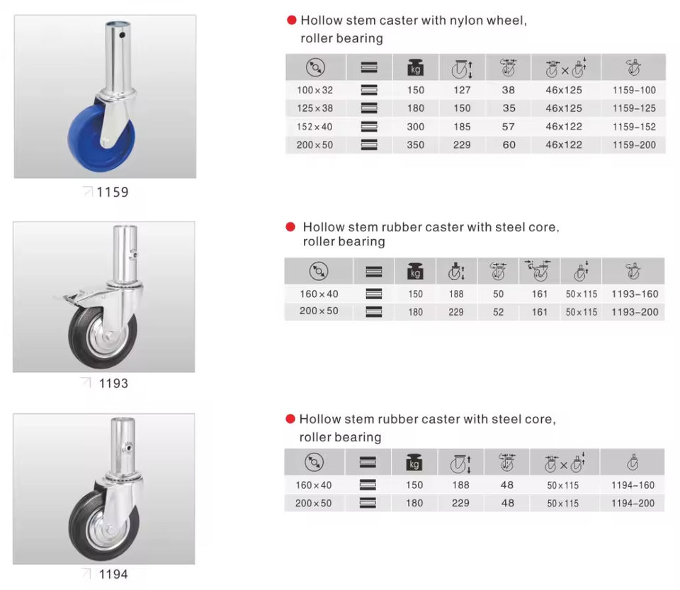 ล้อเลื่อนอุตสาหกรรมคุณภาพดีแบบขายดี ล้อไนลอนแกนกลวง
