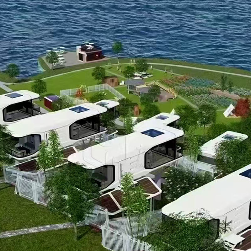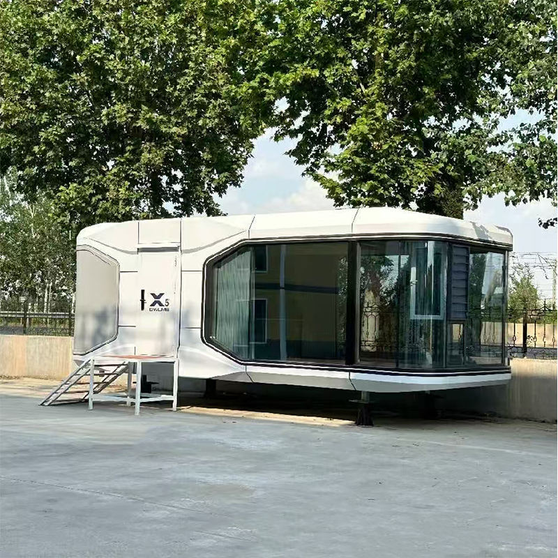 บ้านแคปซูลแบบพกพาขนาดเล็กหรูหราอาคารโครงสร้างเหล็กแบบกำหนดเอง