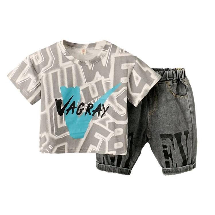 ชุดเสื้อผ้าเด็กขายดี ชุดเด็ก ชุดเซ็ต 2 ชิ้น เสื้อยืดและกางเกงขาสั้นสำหรับเด็กผู้ชาย