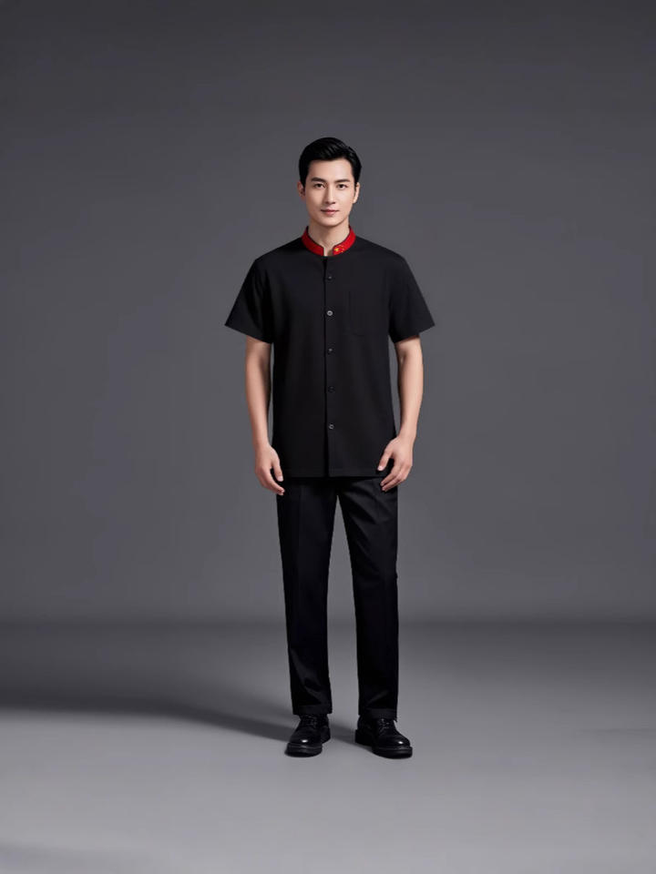 ชุดเครื่องแบบเชฟสำหรับผู้ชายชุดเชฟสำหรับงานโรงแรมพิมพ์ลายสไตล์จีนสำหรับฤดูร้อน