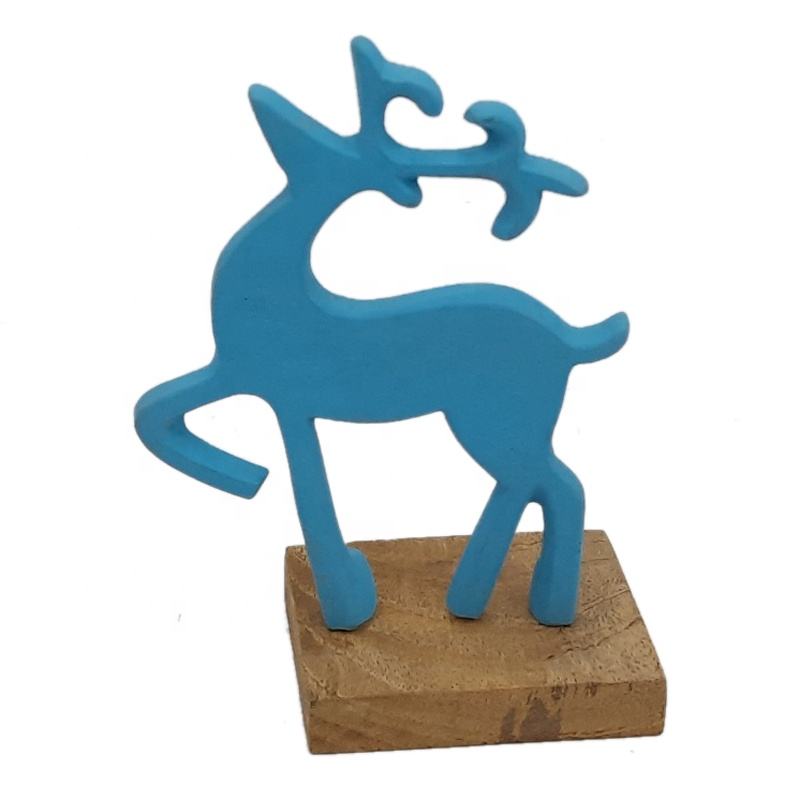 ร้อนขายตกแต่งคริสต์มาสอลูมิเนียมและไม้ตกแต่งกวางเรนเดียที่มีฐานสี่เหลี่ยมสีฟ้าที่ทำด้วยมือที่กำหนดเอง