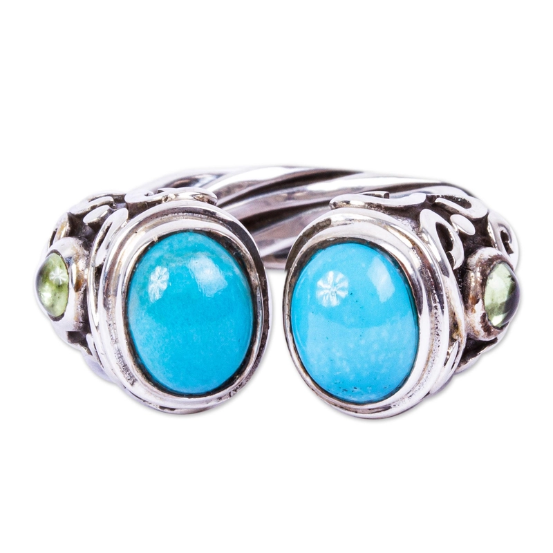 แหวนพลอยเทอร์ควอยซ์ธรรมชาติสีเงินสเตอร์ลิงดีไซน์คลาสสิก