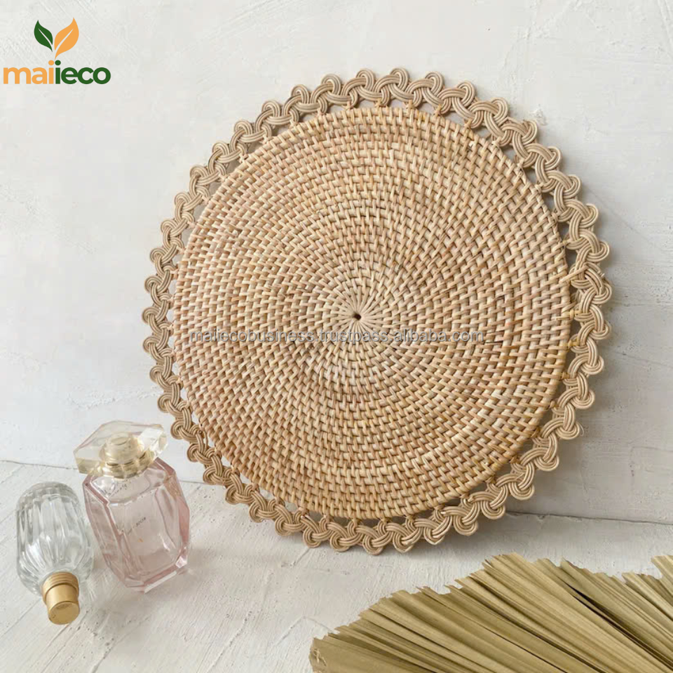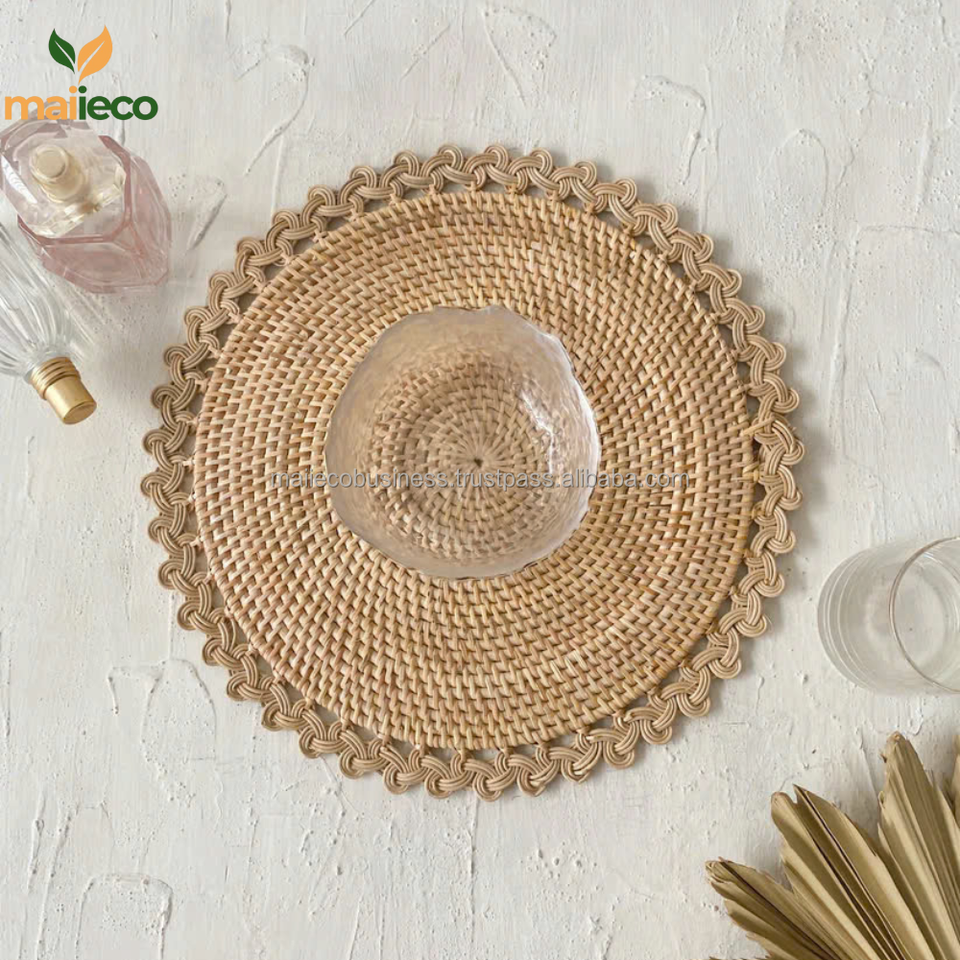 แผ่นรองจานบนโต๊ะหวายสำหรับรับประทานอาหารงานแต่งงานที่บ้าน