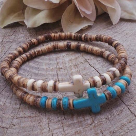 กำไลข้อมือคริสตัลสีเทอร์ควอยส์สำหรับผู้ชายสร้อยข้อมือทางศาสนาทำด้วยมือประดับลูกปัดทำมือกำไลข้อมือไม้ยืดหยุ่น