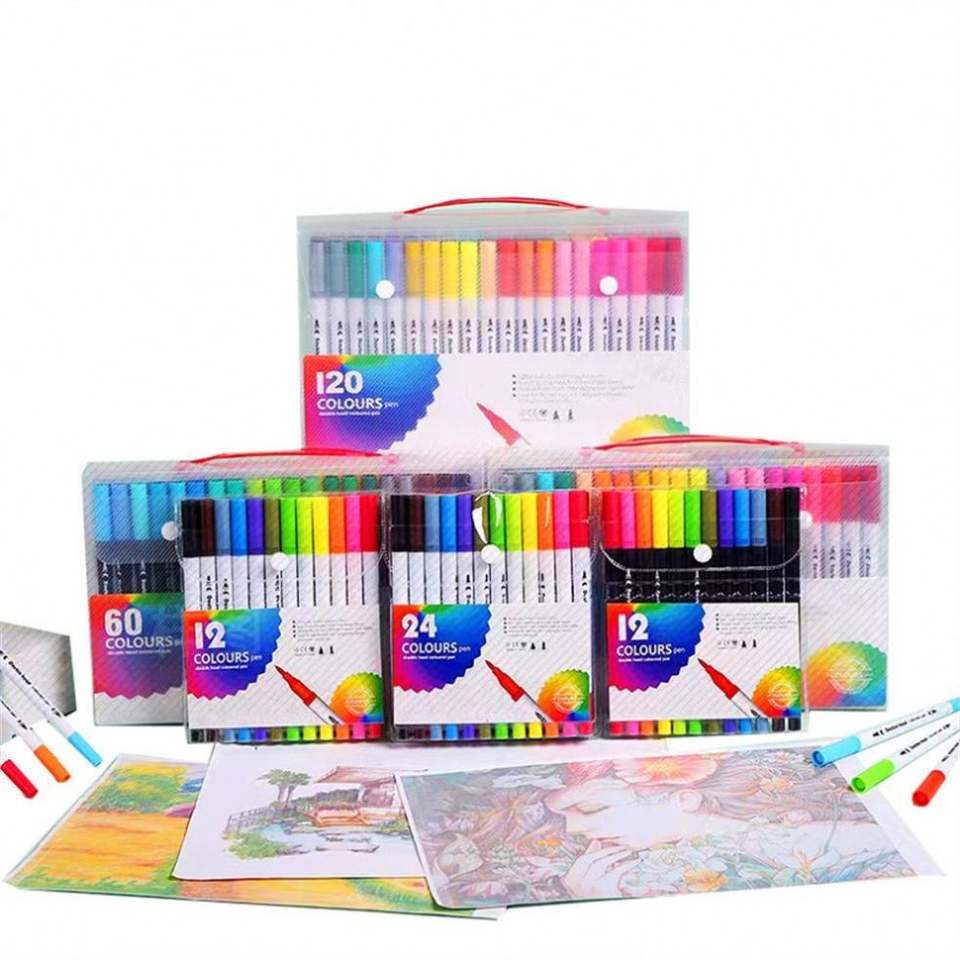 ปากกาหัวพู่กันสองหัว สีสวย ขายดี ระบายสีได้ ล้างออกได้ ชุดปากกามาร์คเกอร์สำหรับวาดภาพ ระบายสี