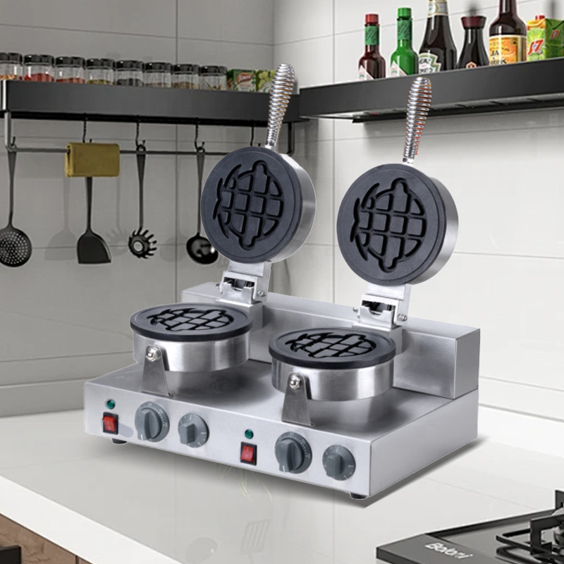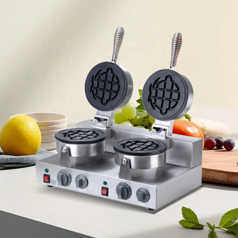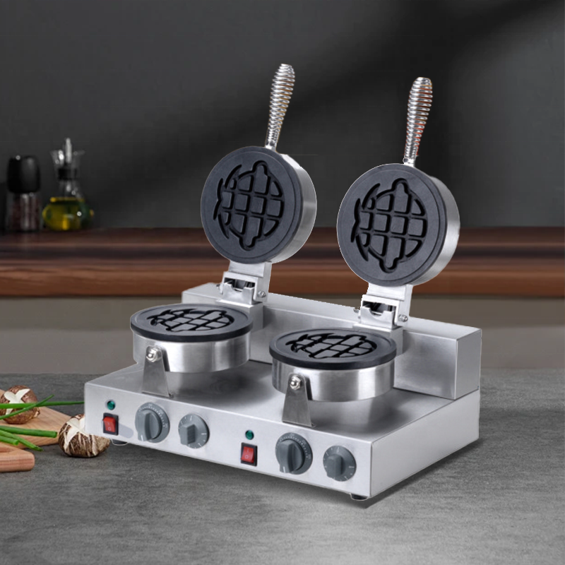 เครื่องทำวาฟเฟิลสแตนเลสใช้ในเชิงพาณิชย์อุปกรณ์ครัวสองรูปการ์ตูนไม่ติดกระทะ