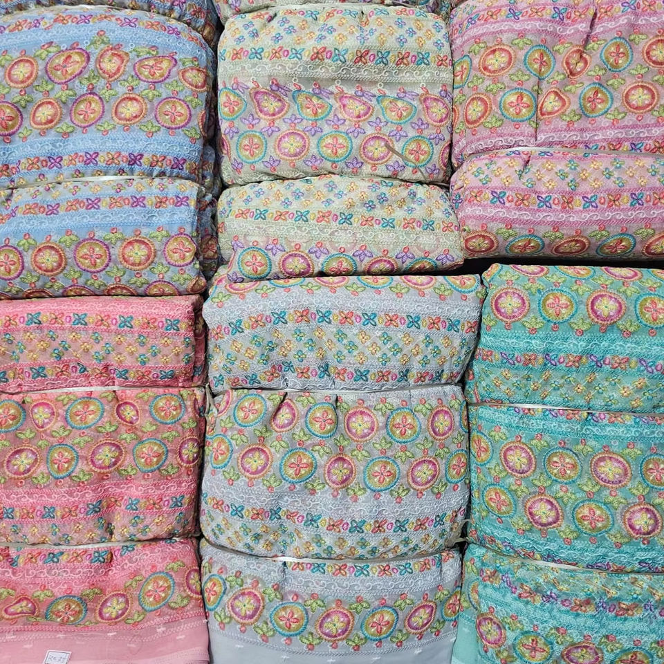 ผ้าปักลายฟ็อกซ์จอร์เจตต์หลากสี สำหรับทำชุดแฟนซี